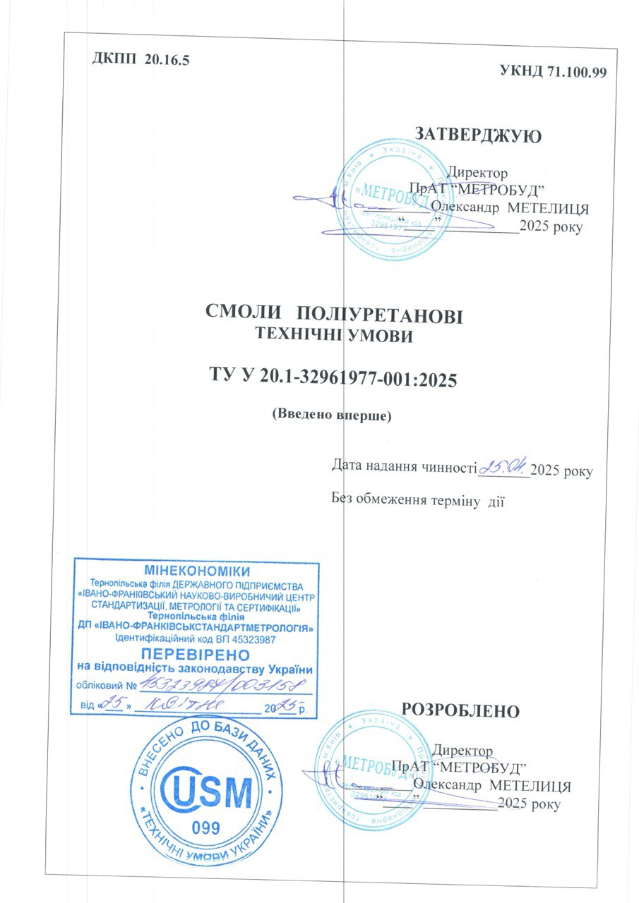 | Щільність при +25°С | кг/м3 | 1.030 ± 30 | 1.230 ± 30 | ДСТУ 7261 |